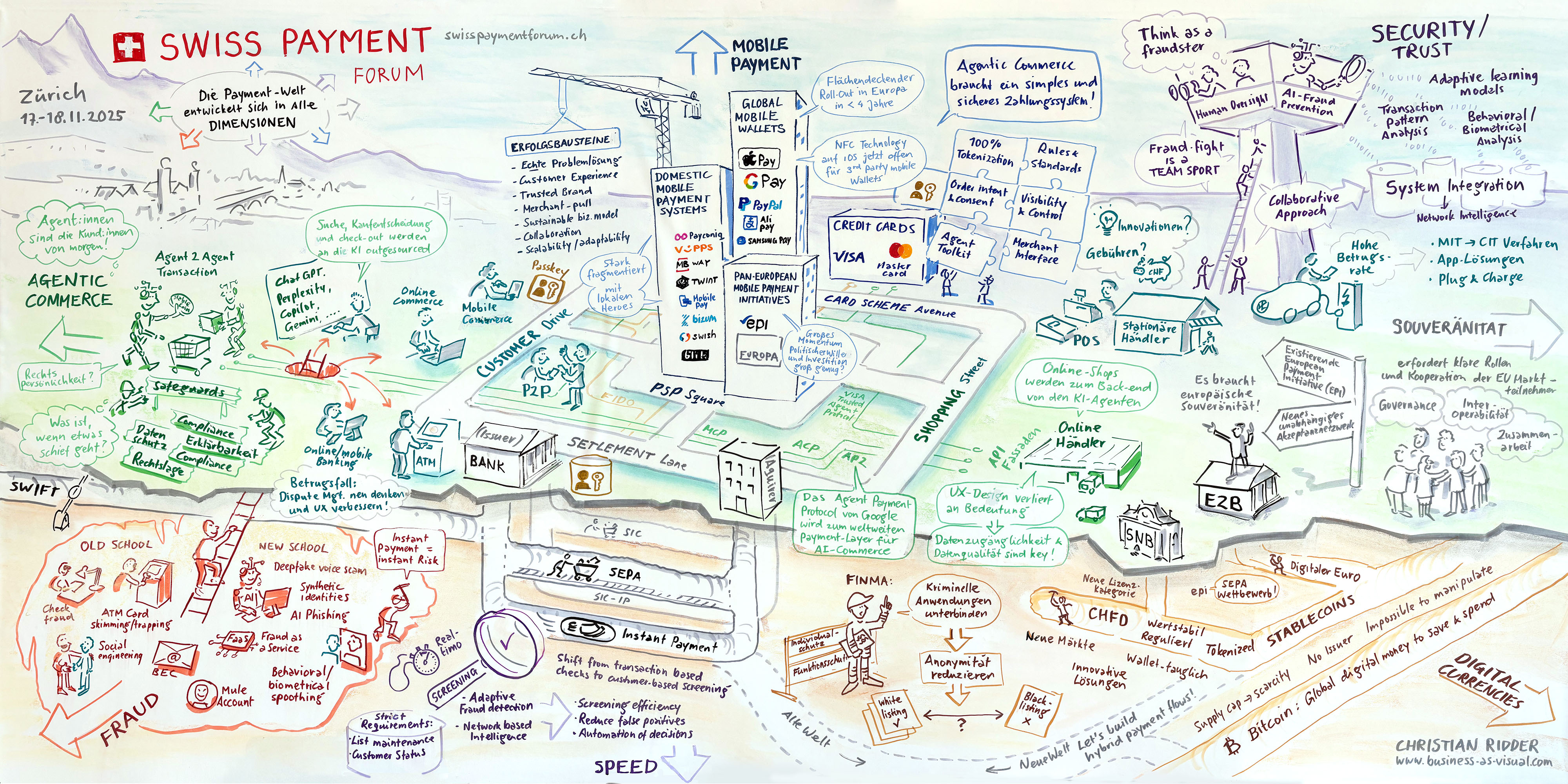 Erleben Sie die wesentlichen Inhalte und Aussagen unserer Tagungen kompakt und übersichtlich zusammengefasst als Graphic Recording. Ein Illustrator transponiert live während der Tagung das gesprochene Wort in anschauliche Zeichnungen. Vor Ort entdecken Sie so auf einer ca. 2,40 x 1,4 m grossen Leinwand eine völlig neue und faszinierende Seite der fachlichen Inhalte.